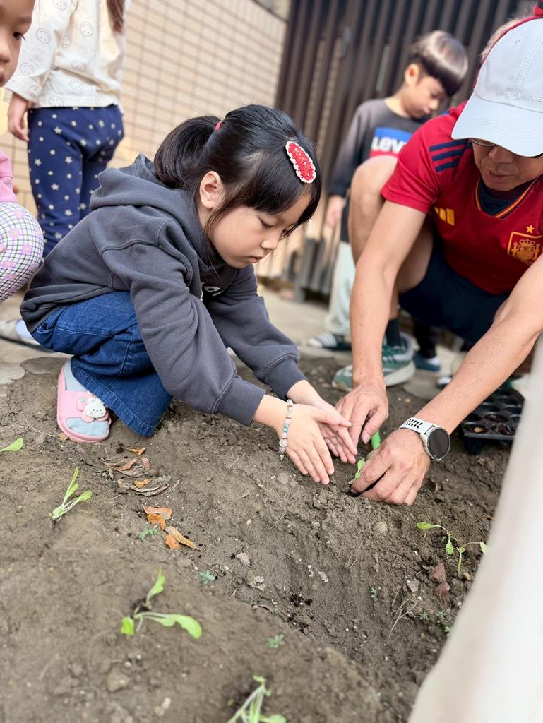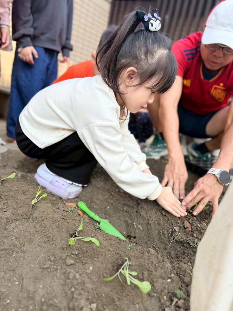 孩子們將菜苗種下去,等待收成...