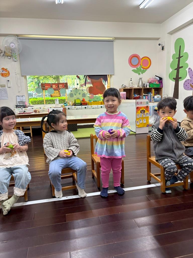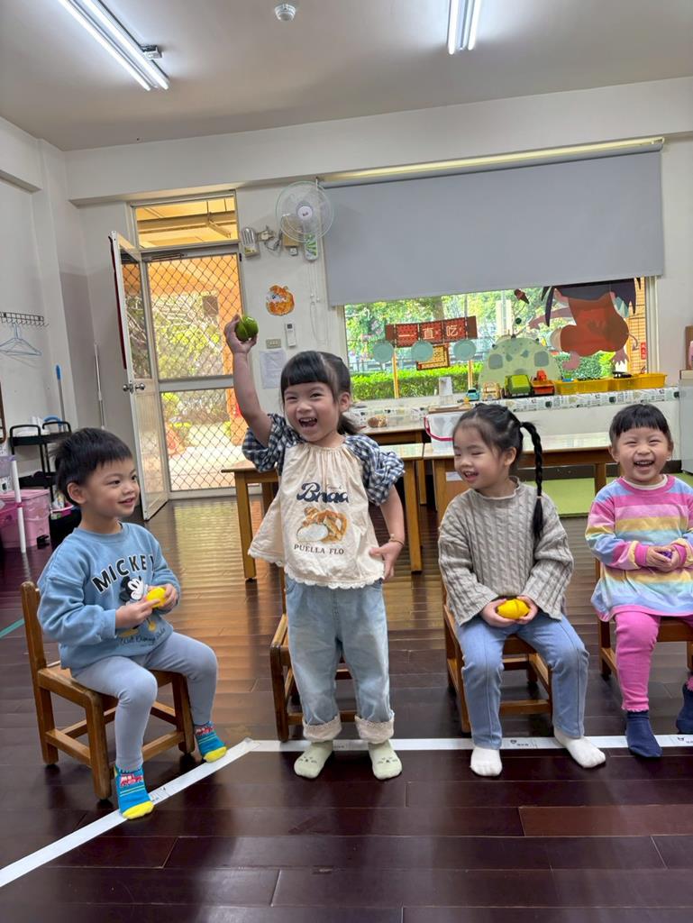閉眼抽一種水果,接著喊到相同特徵的水果就要站起來,可以認識及熟悉更多種水果。