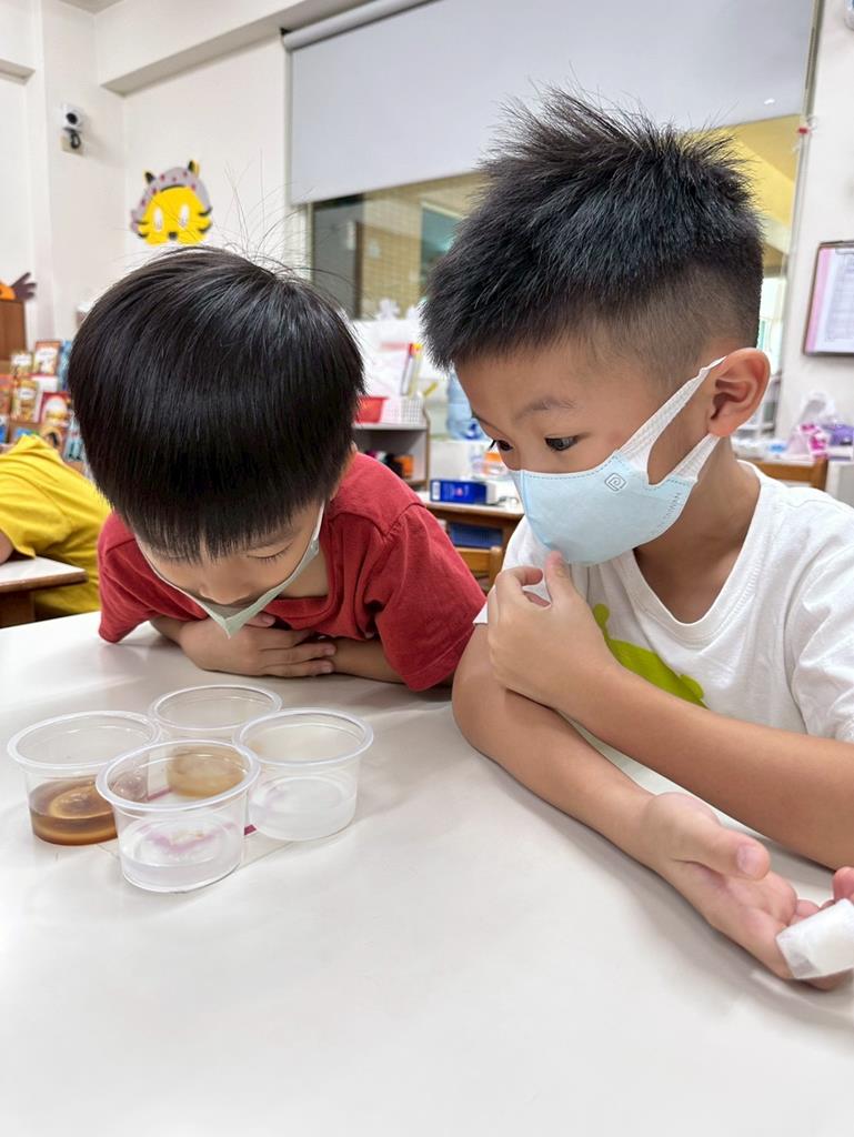 藉由這活動,讓孩子動手做實驗,觀察冰糖、砂糖、糖粉的溶化過程及速度。