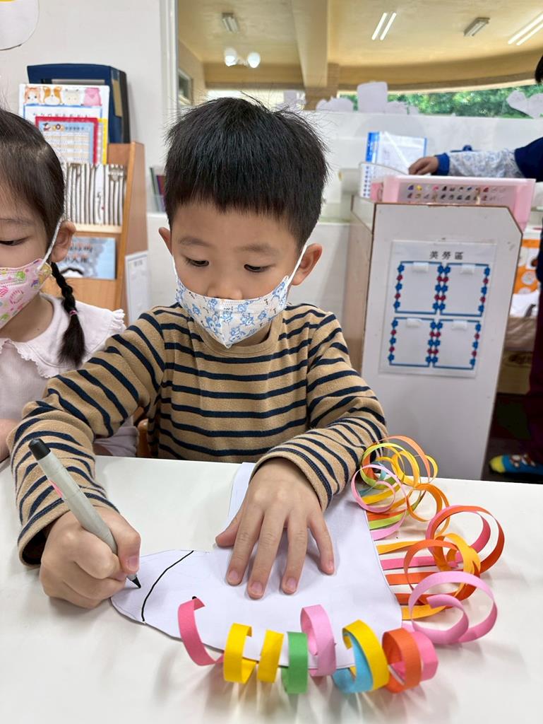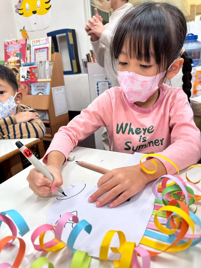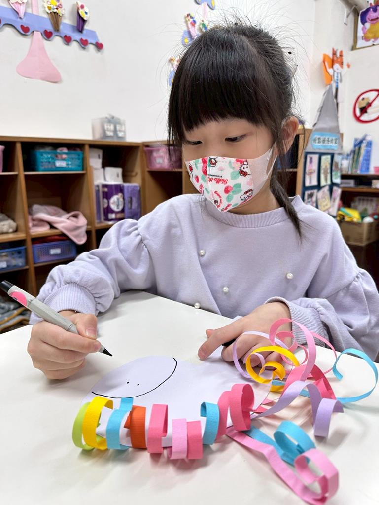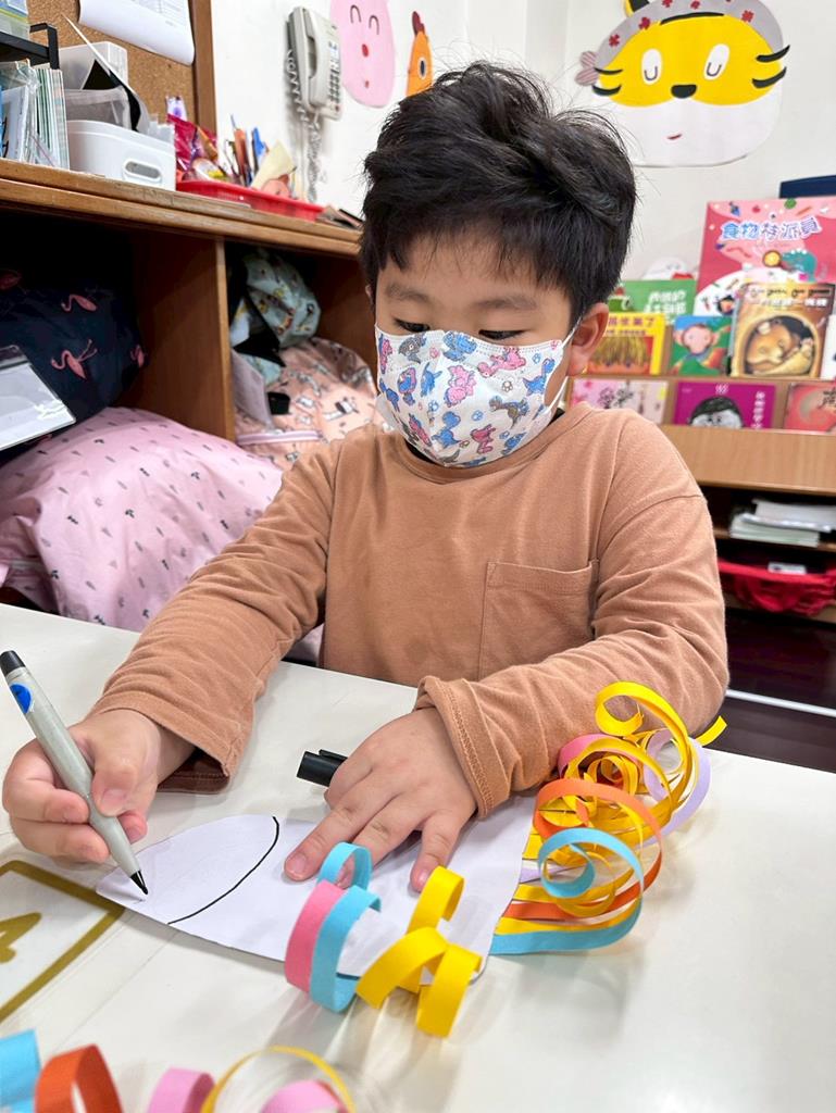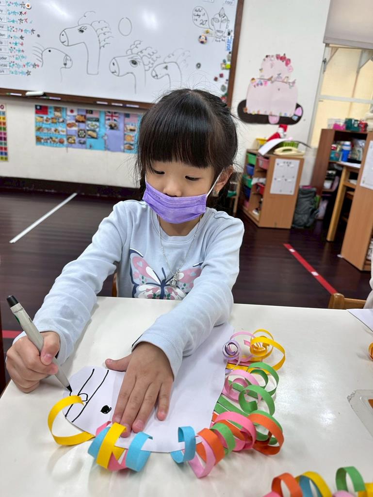 馬年創作,透過捲的動作,練習小肌肉,藉由不同顏色的紙條,創作出屬於每位孩子的作品特色。