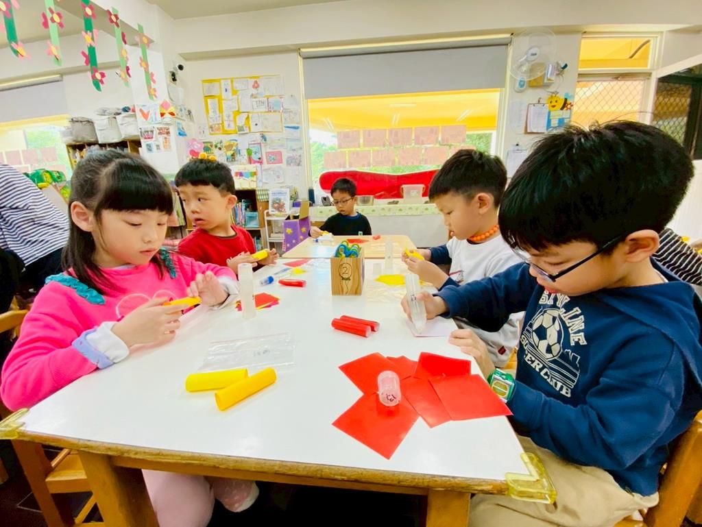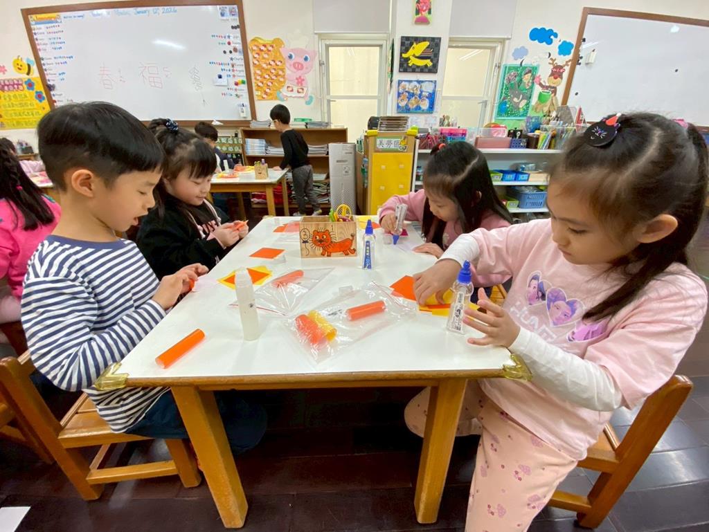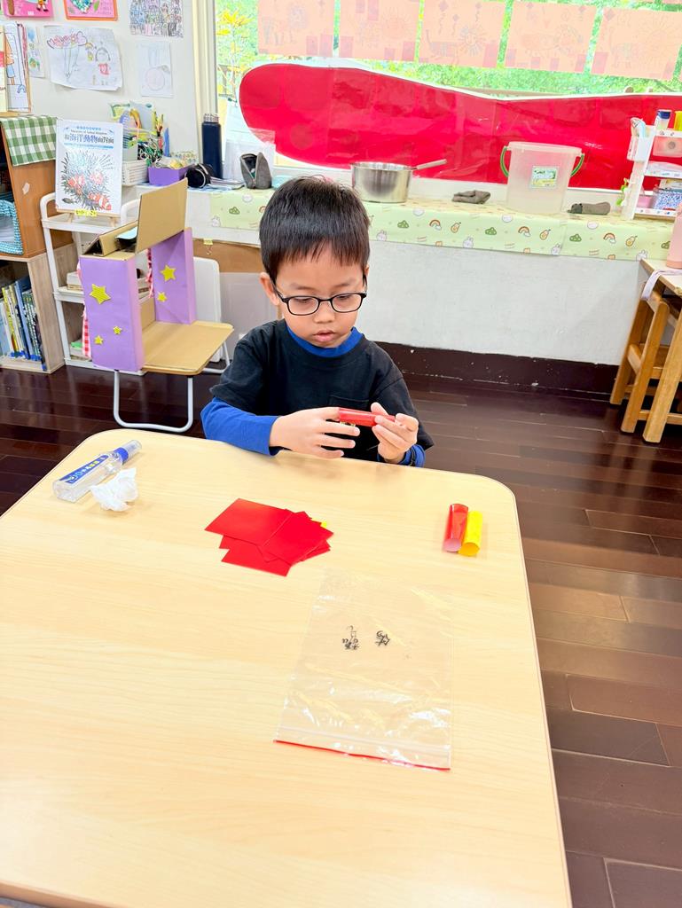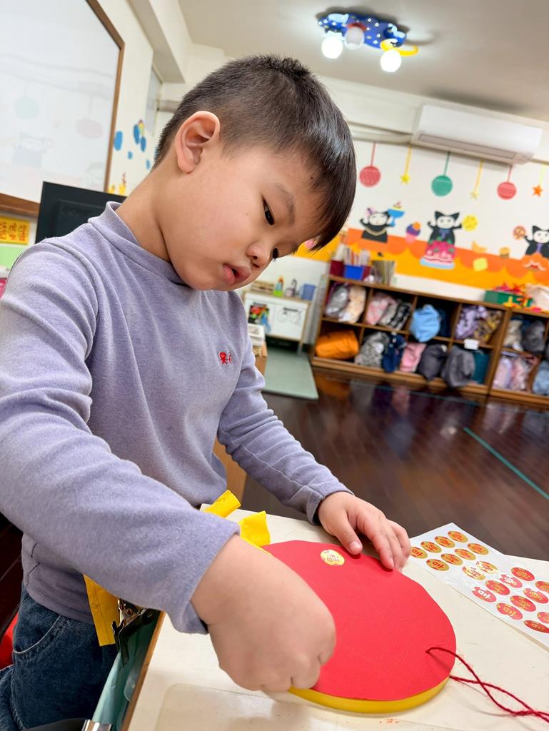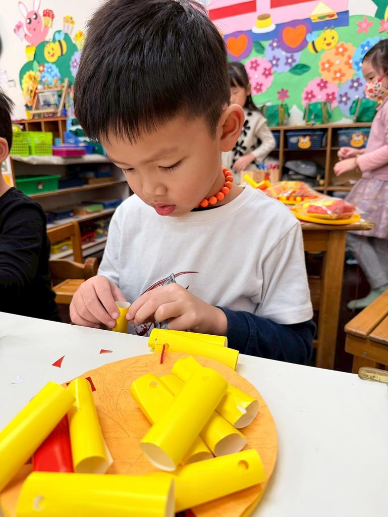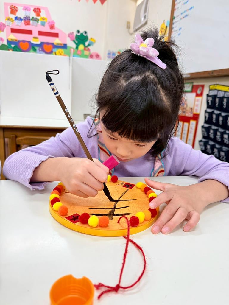 孩子嘗試做鞭炮仿寫毛筆字寫上春或福...