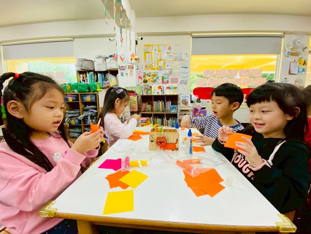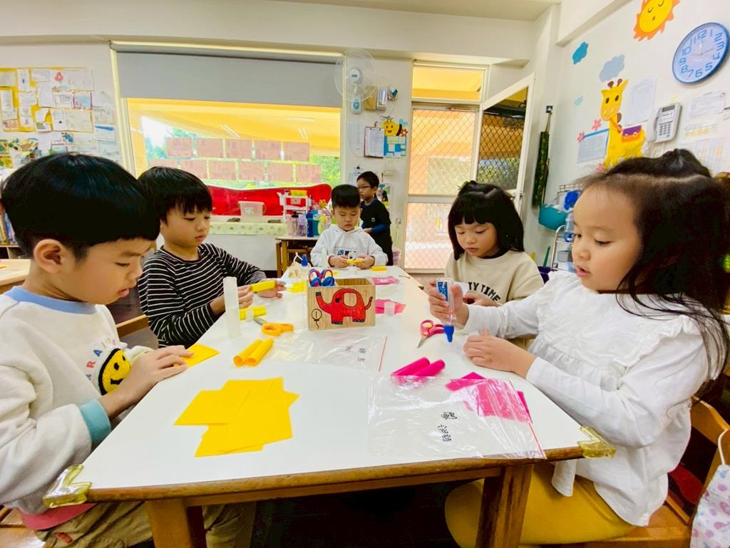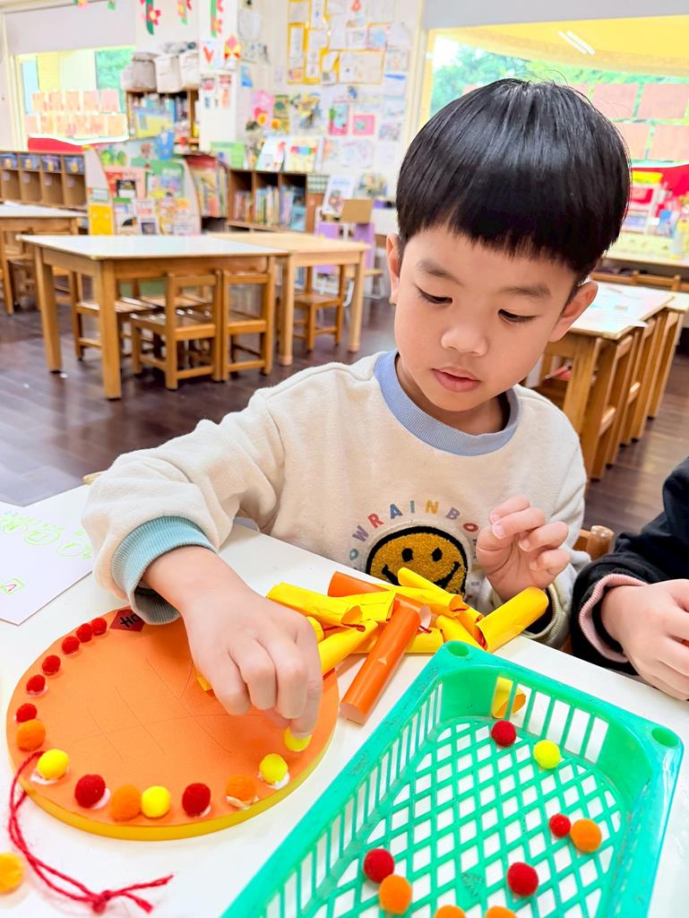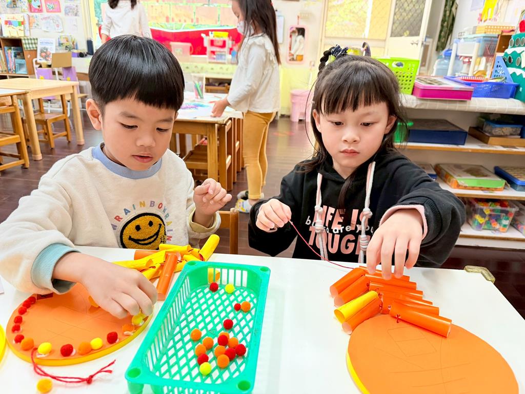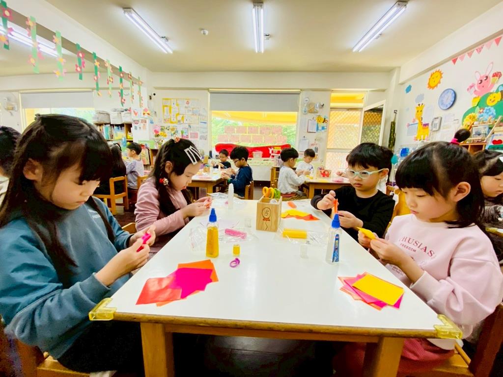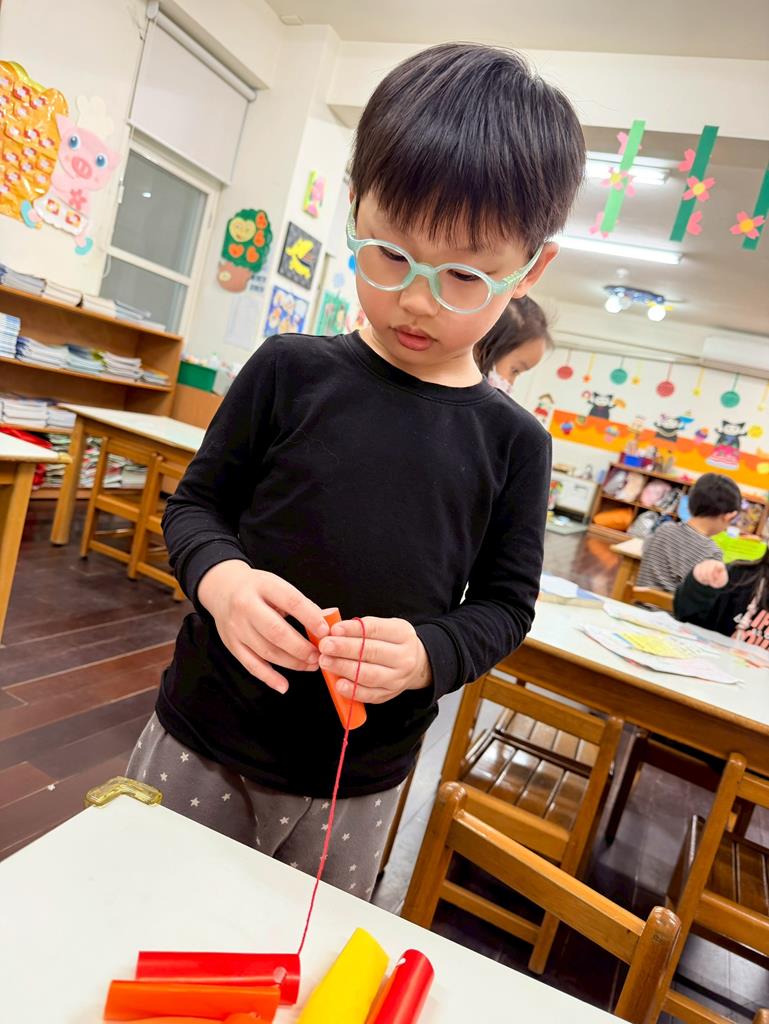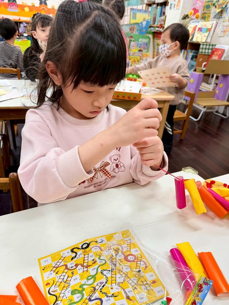 孩子嘗試做鞭炮仿寫毛筆字寫上春或福...