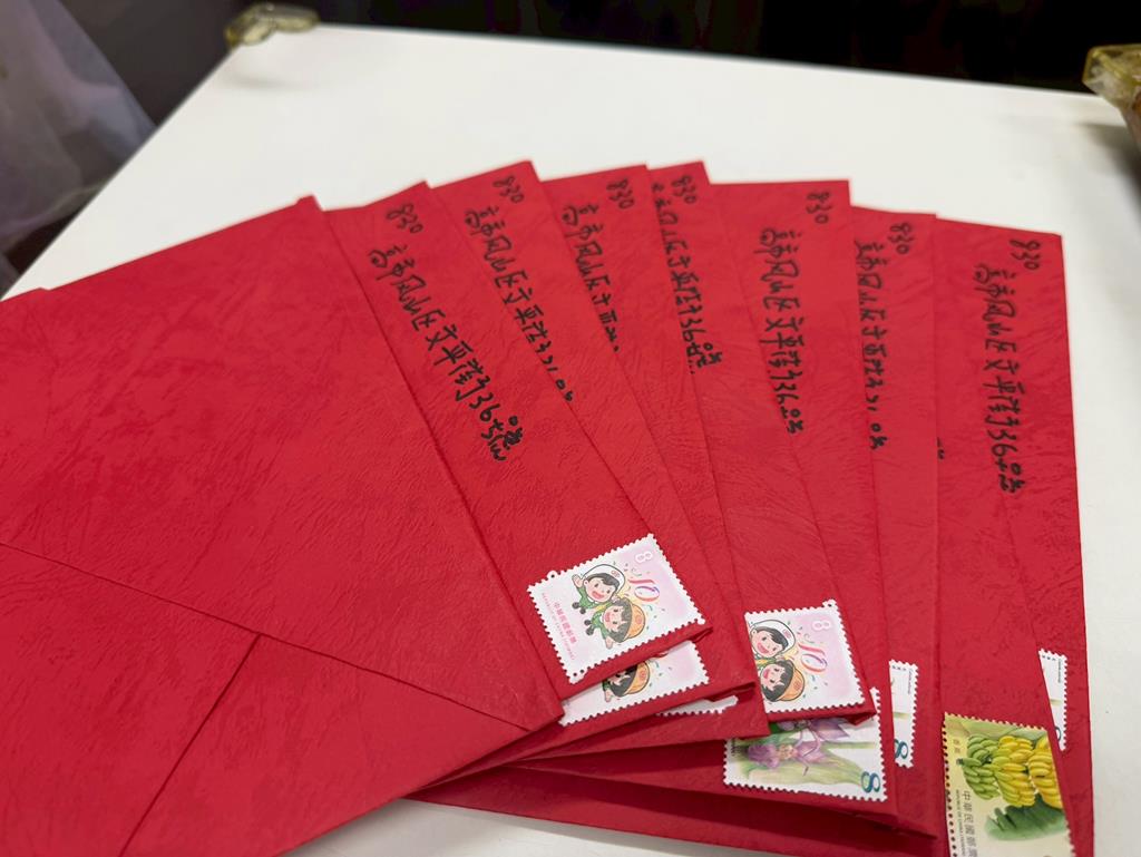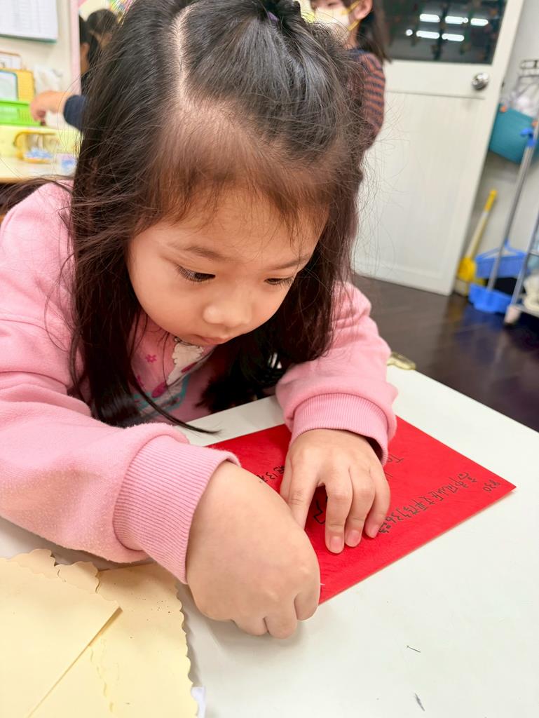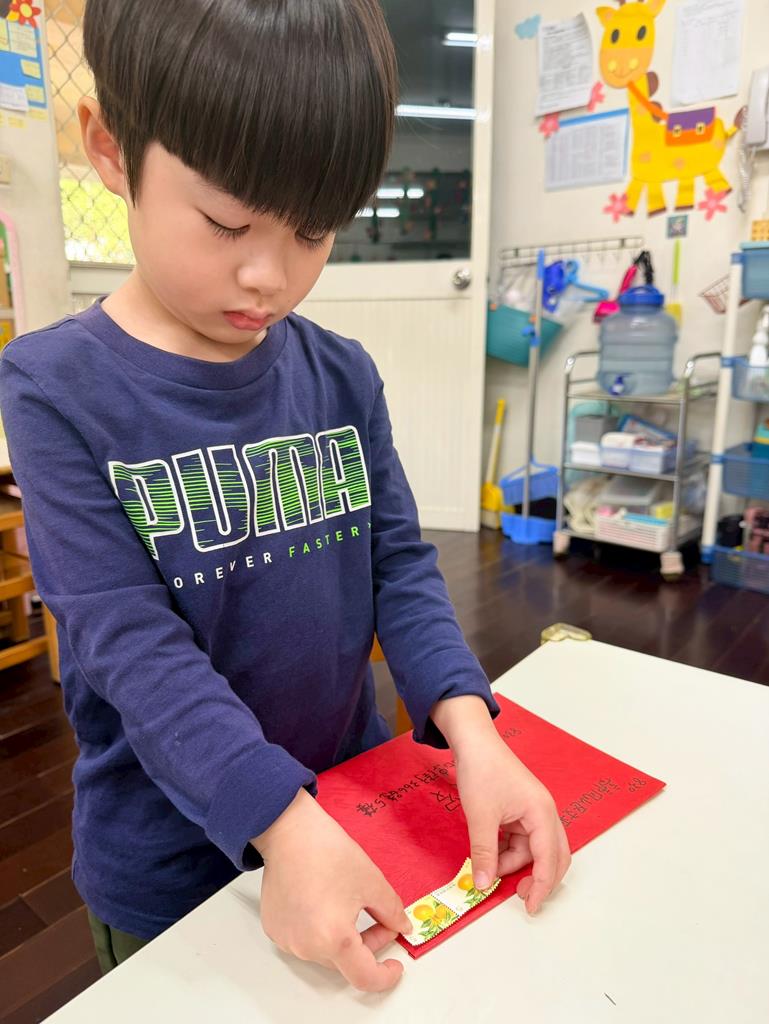 孩子們自己畫新年賀卡準備拿去寄...