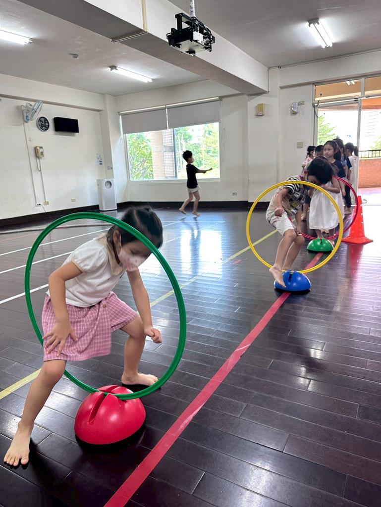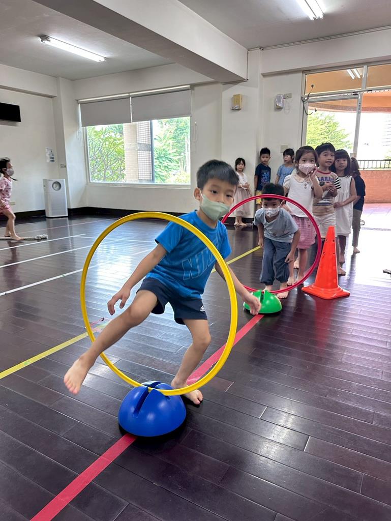 運用之前的個別活動,融合在一起,增加孩子的靈敏性。
