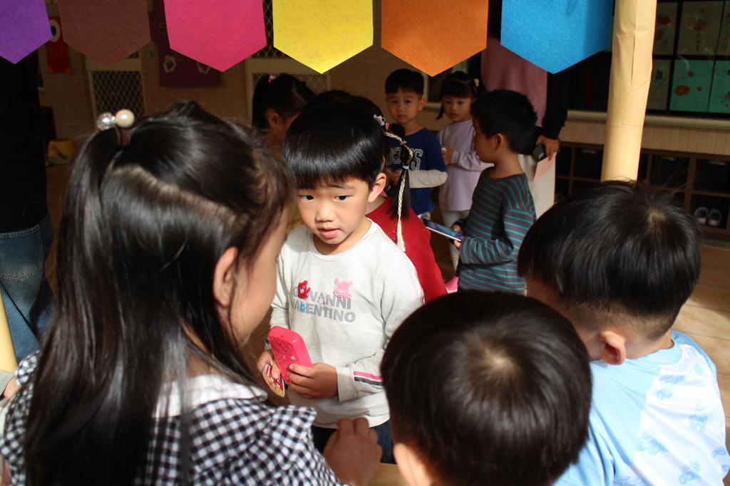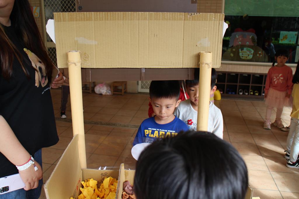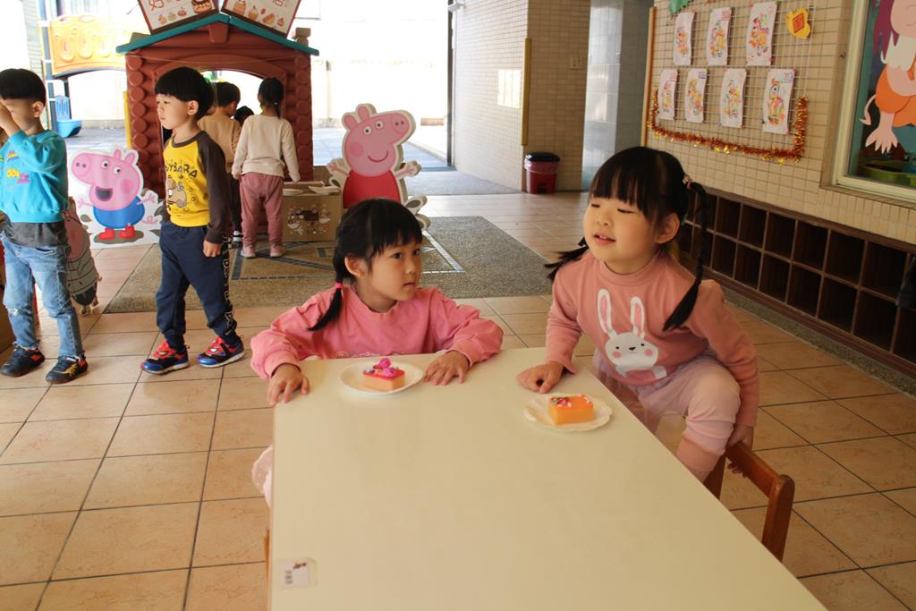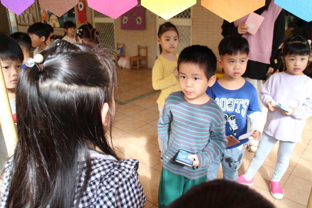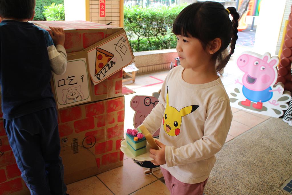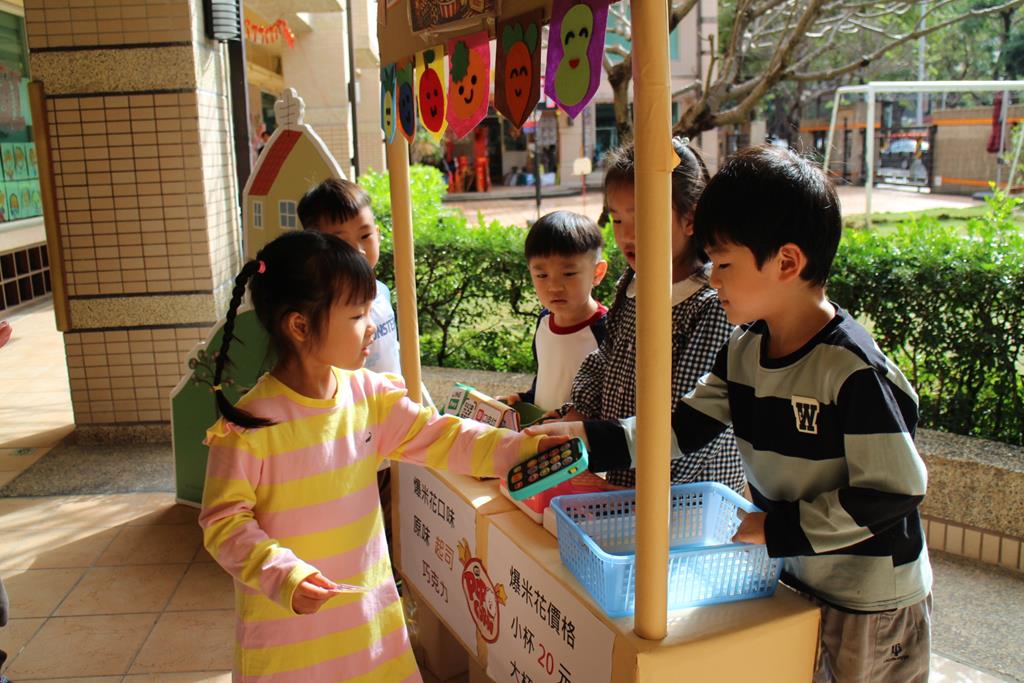 受邀參加開店儀式,大家排隊購買爆米花、蛋糕店和披薩店,練習買賣的禮儀