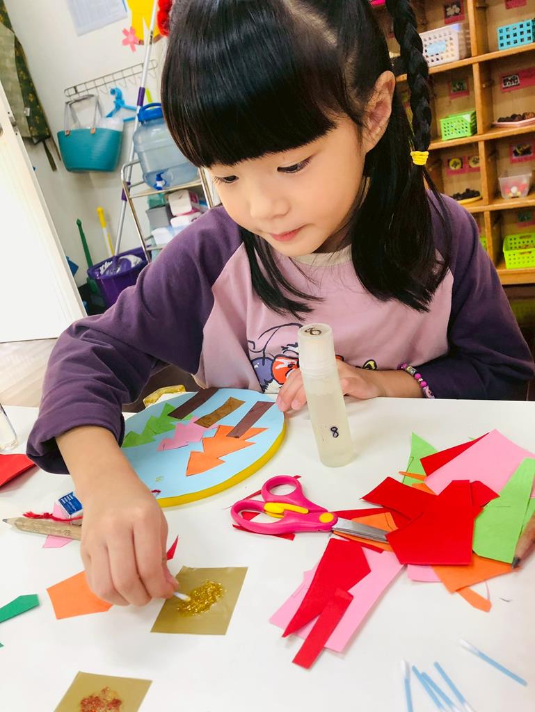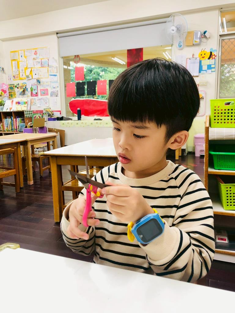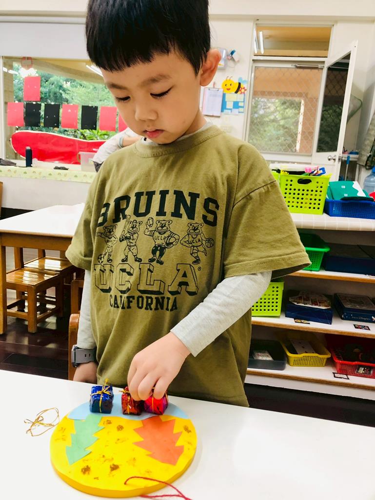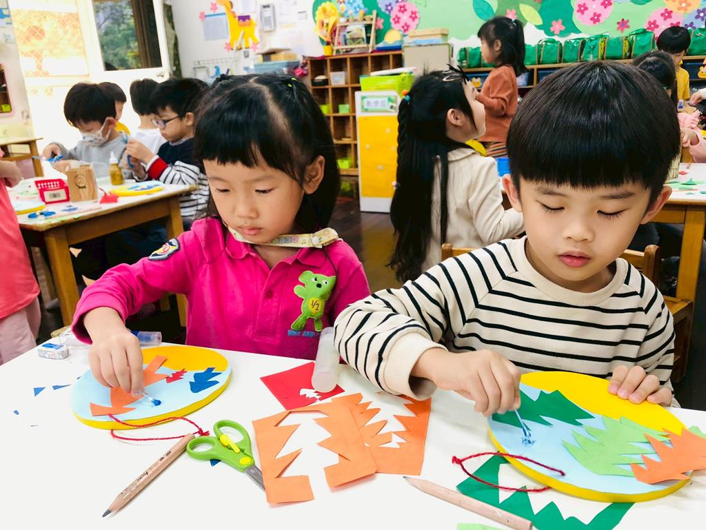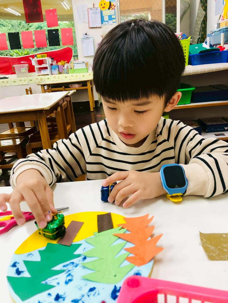 孩子們剪下自己畫的聖誕樹...