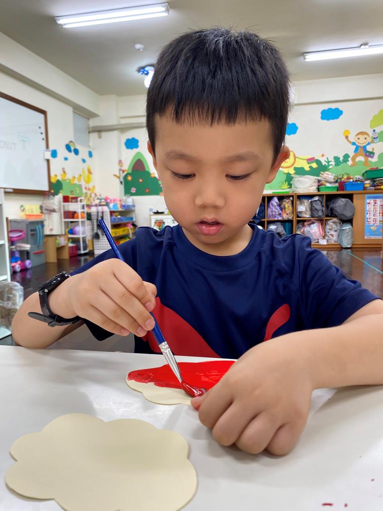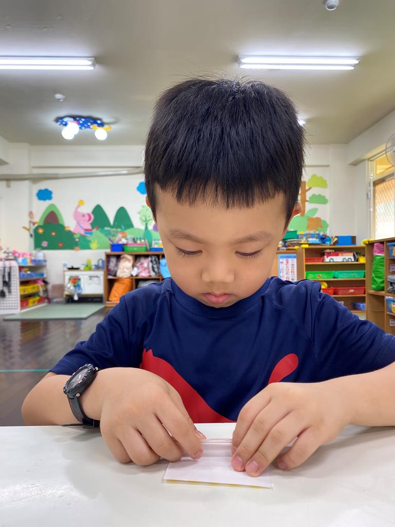 孩子們一起來布置教室,利用摺紙來做一個杯子蛋糕的底盒再畫上喜愛的食物貼上去...