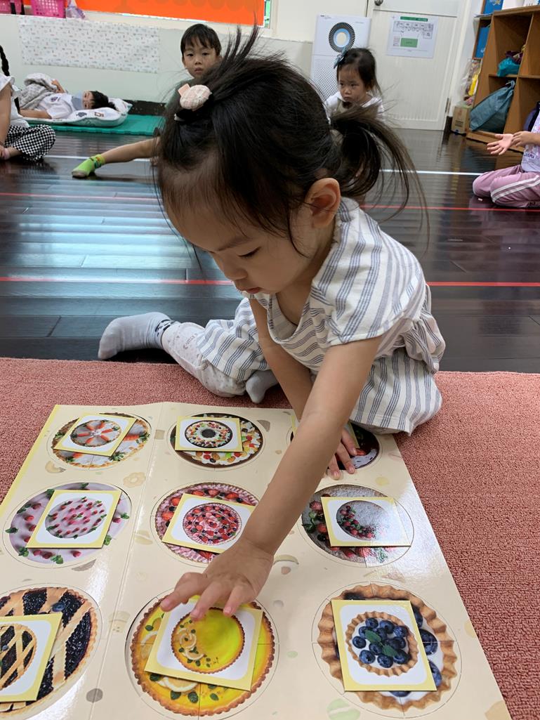 翻牌找出相對應的蛋糕,考驗孩子們的對應能力...