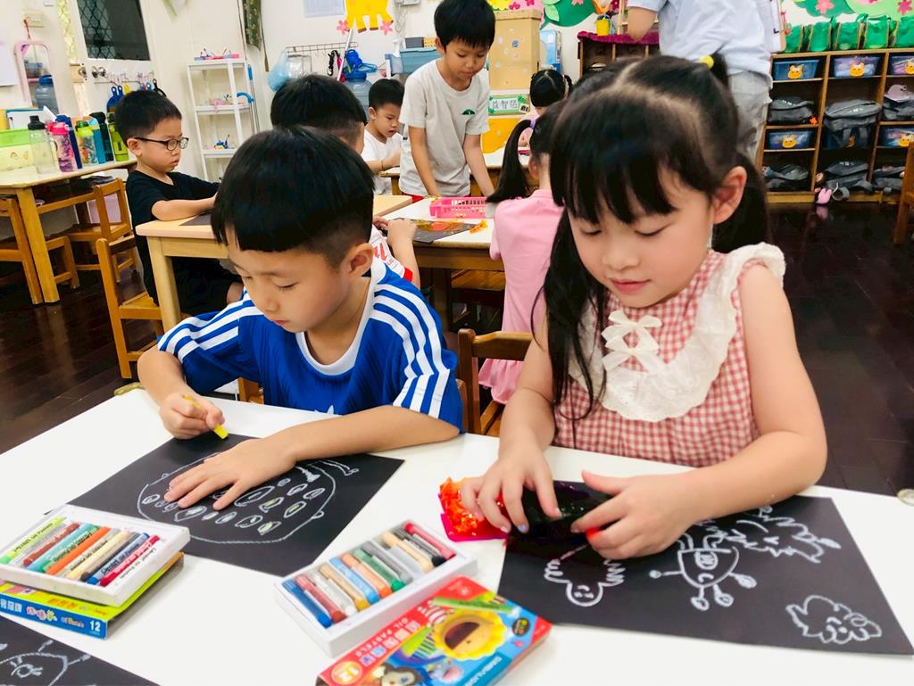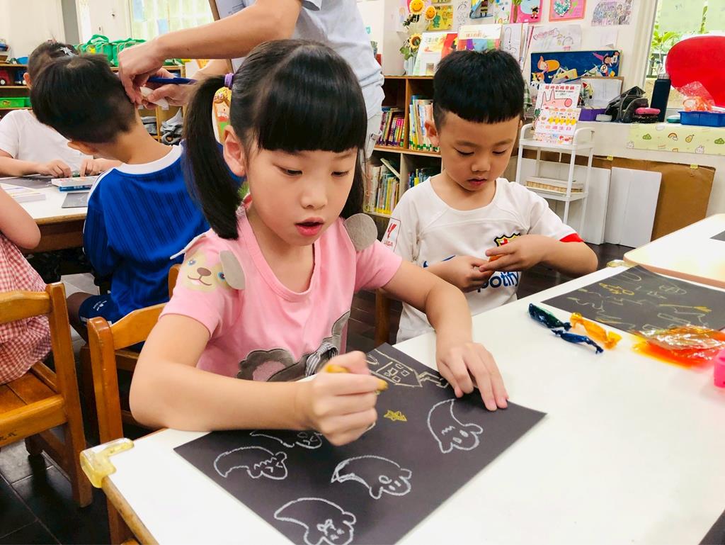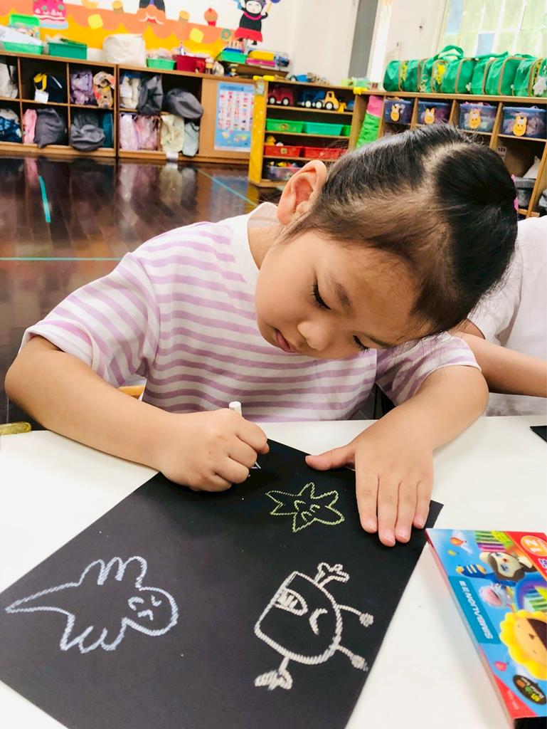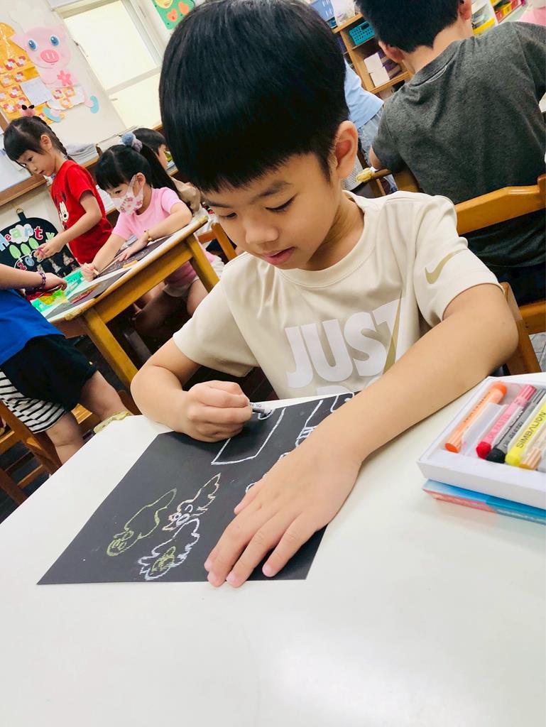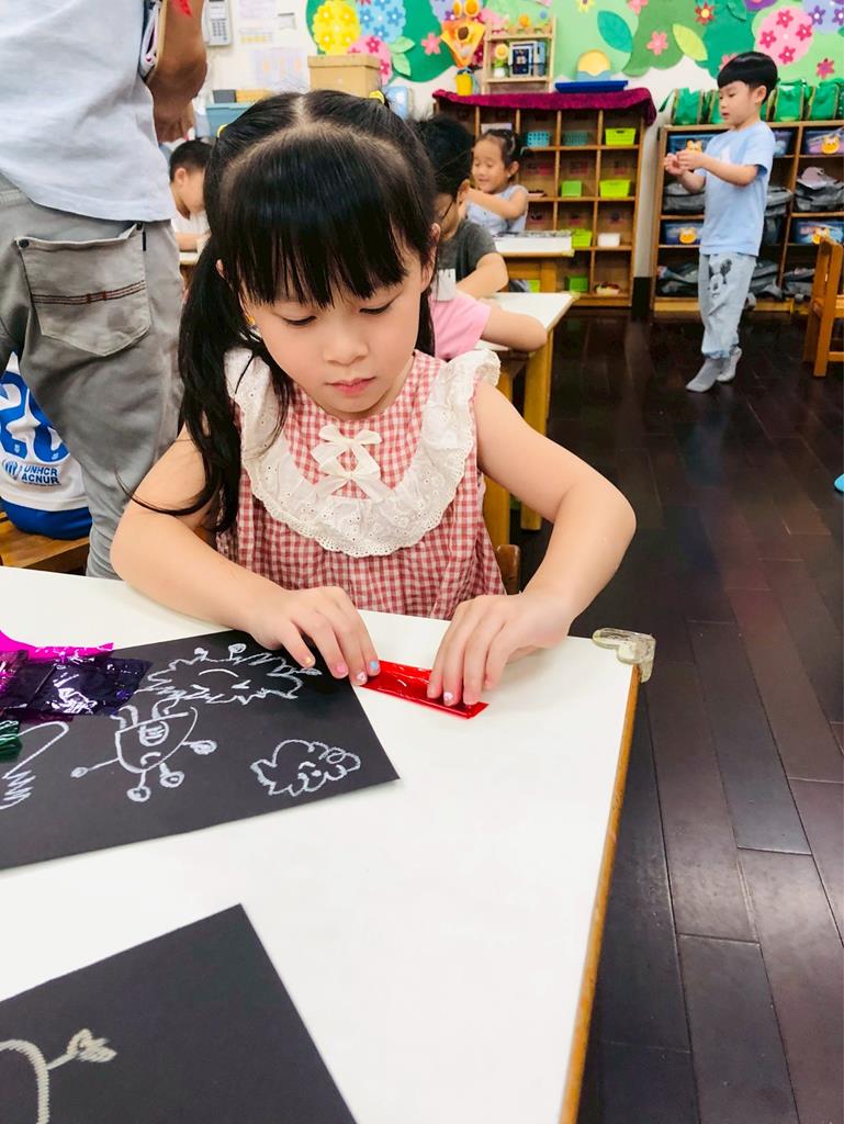 運用玻璃紙包成糖果,孩子們再畫上不同的妖怪