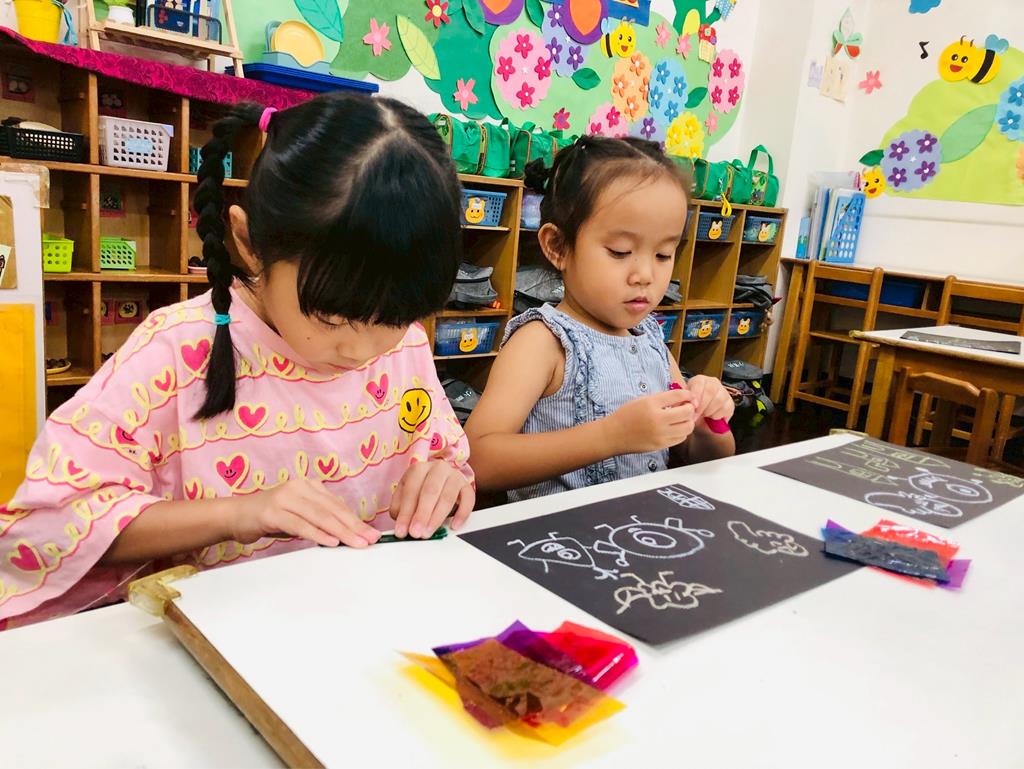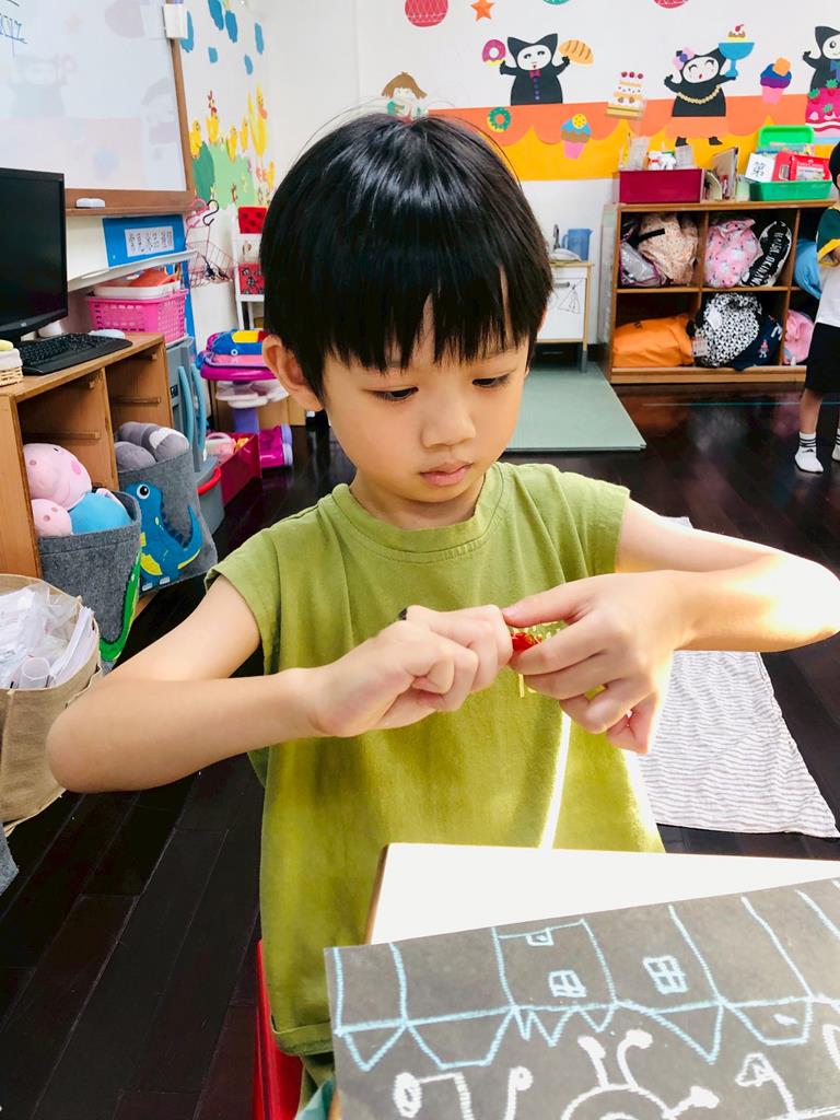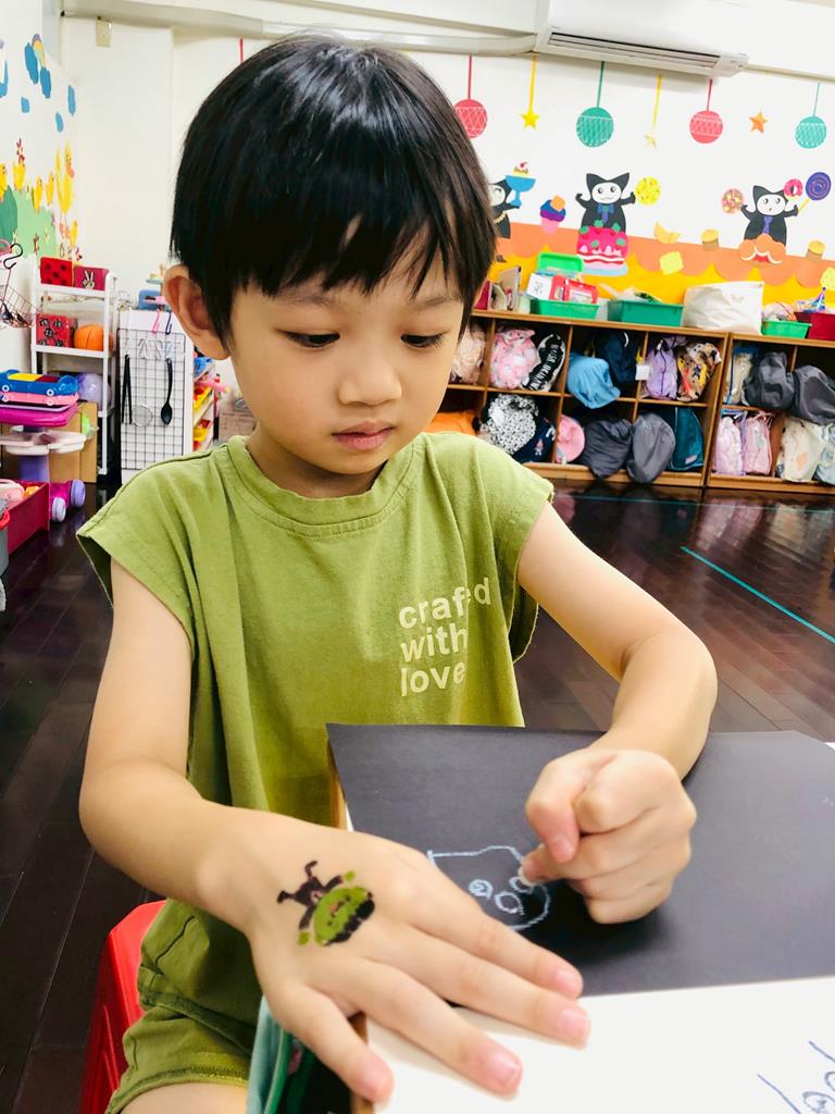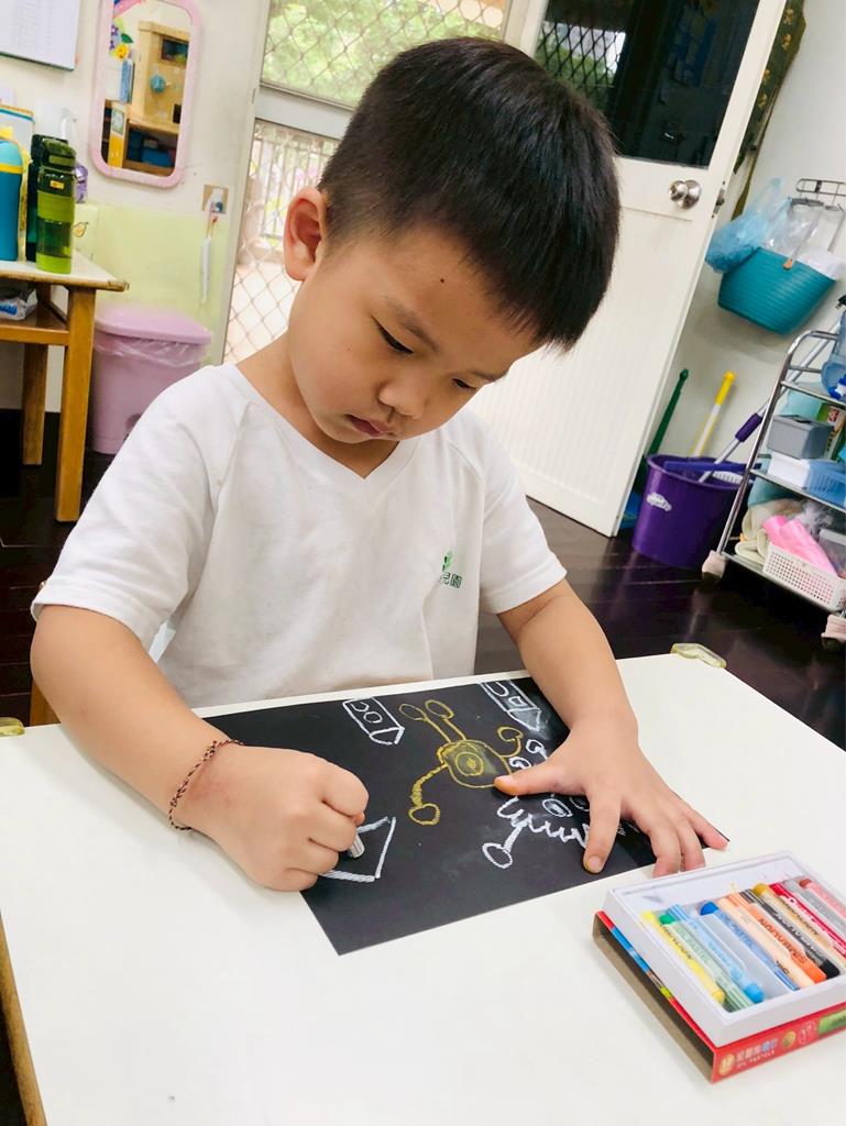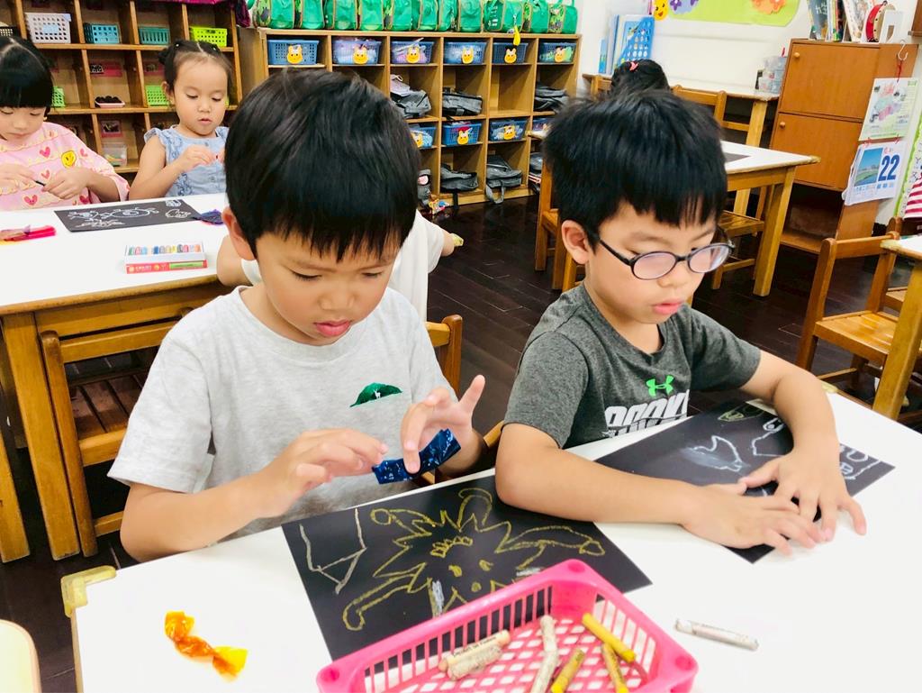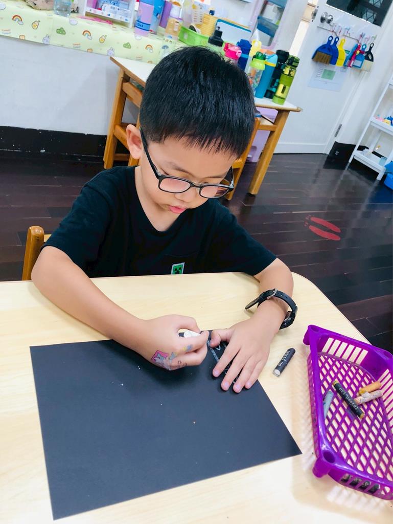 運用玻璃紙包成糖果,孩子們再畫上不同的妖怪