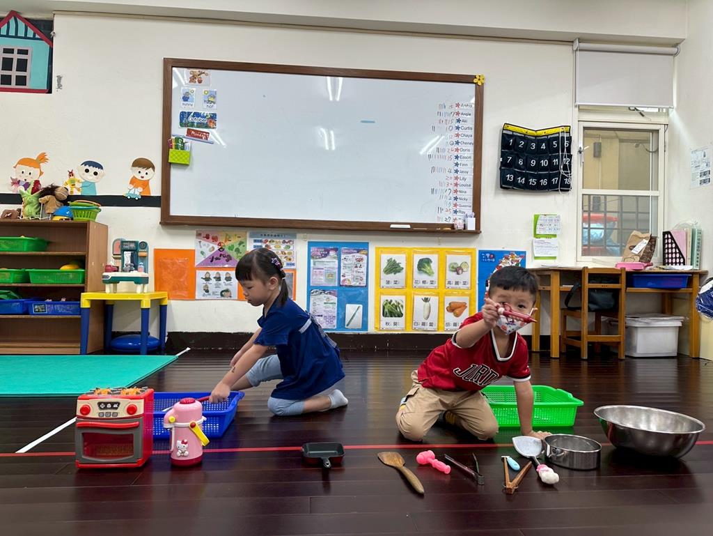 認識完烹飪的工具後,分組進行找一找遊戲