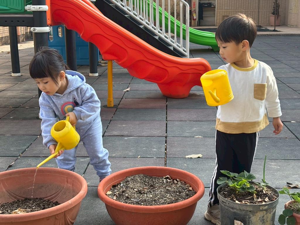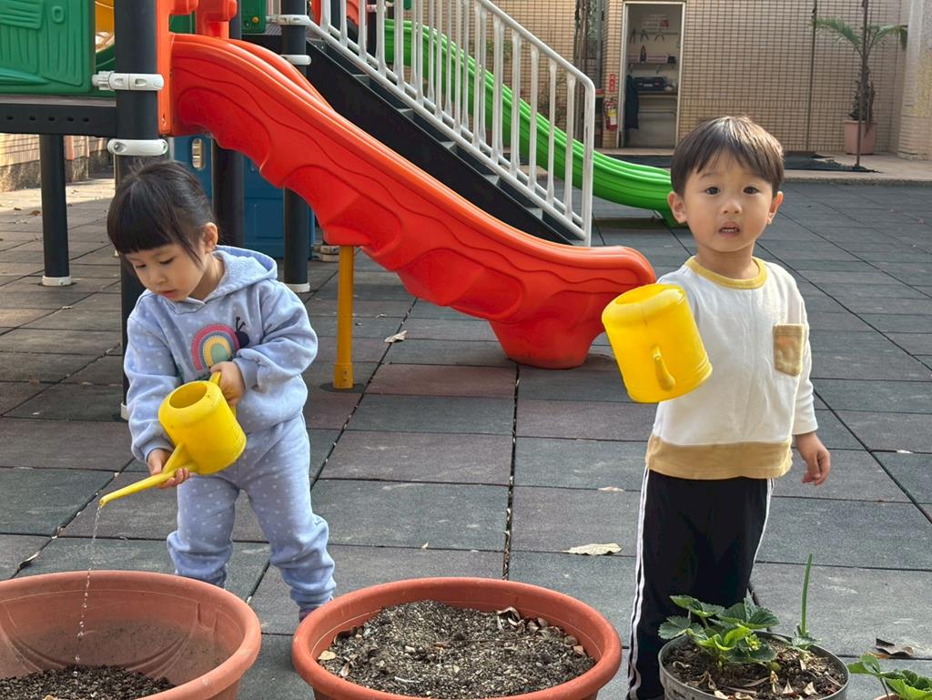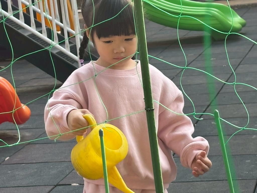 我要幫植物澆水,這樣它才會快快長大~
