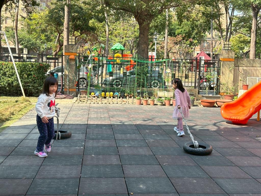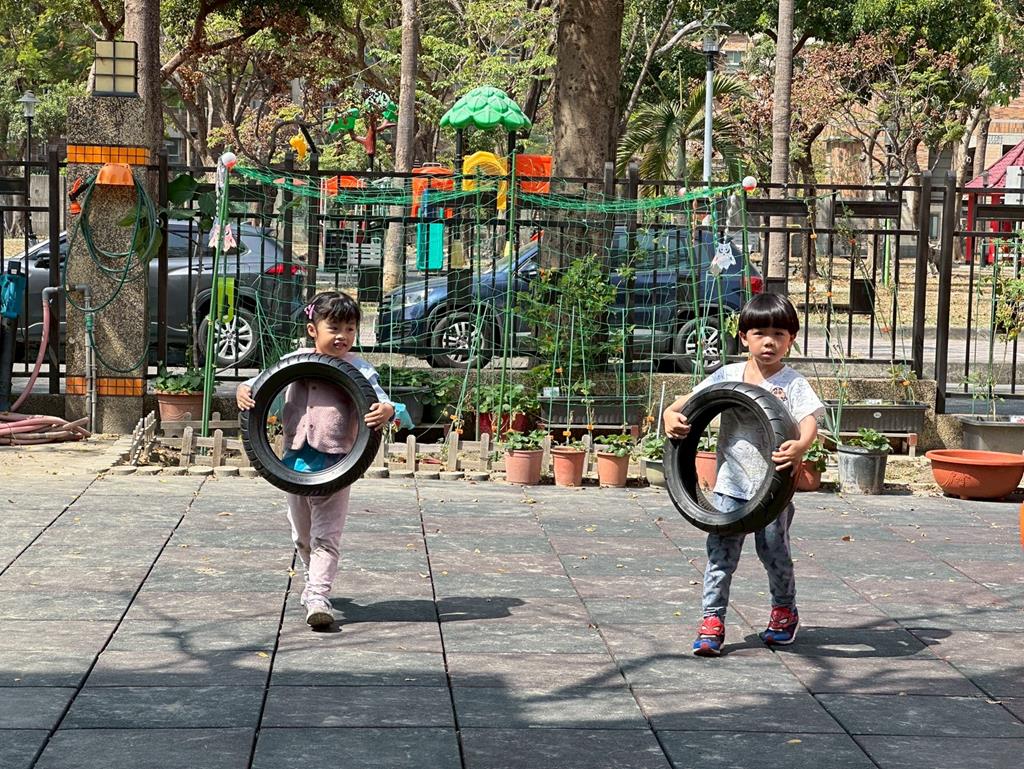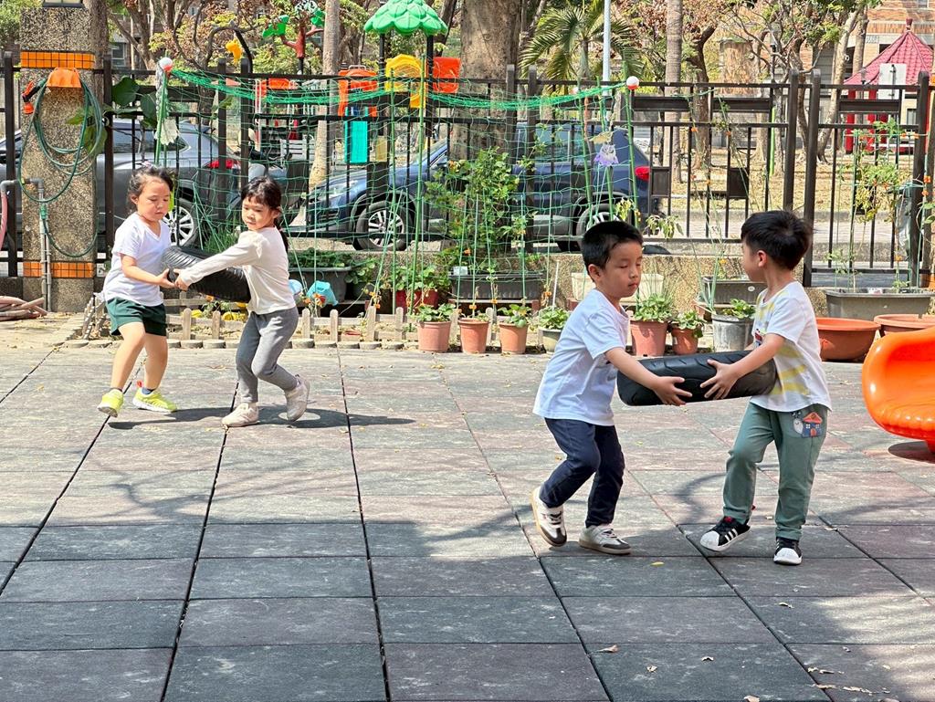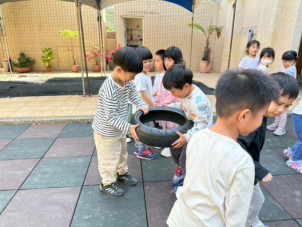 使用輪胎進行練習拉、搬的動作