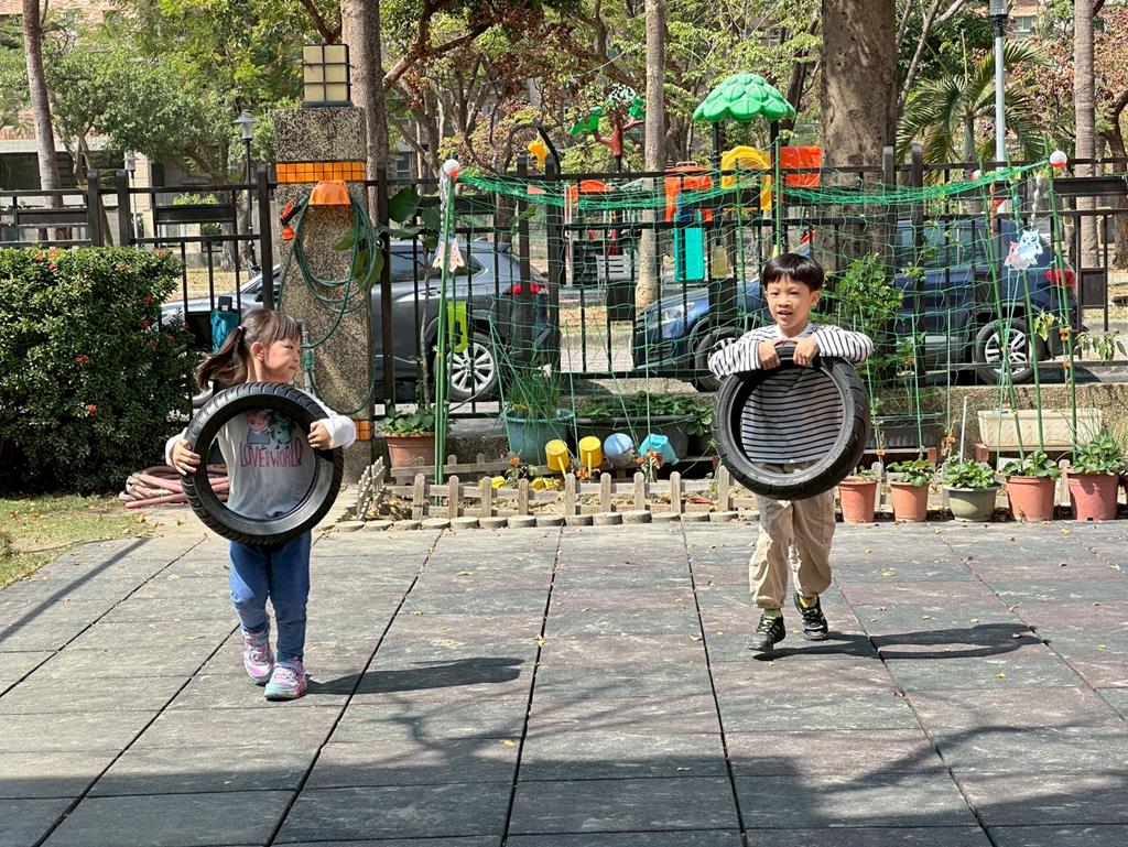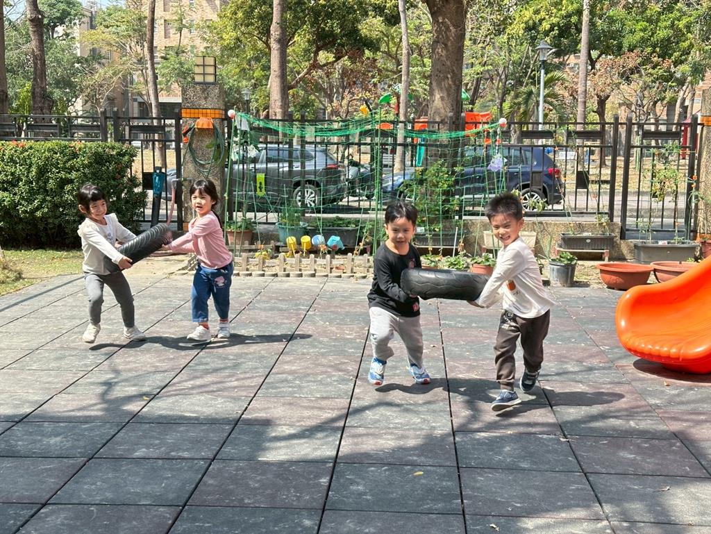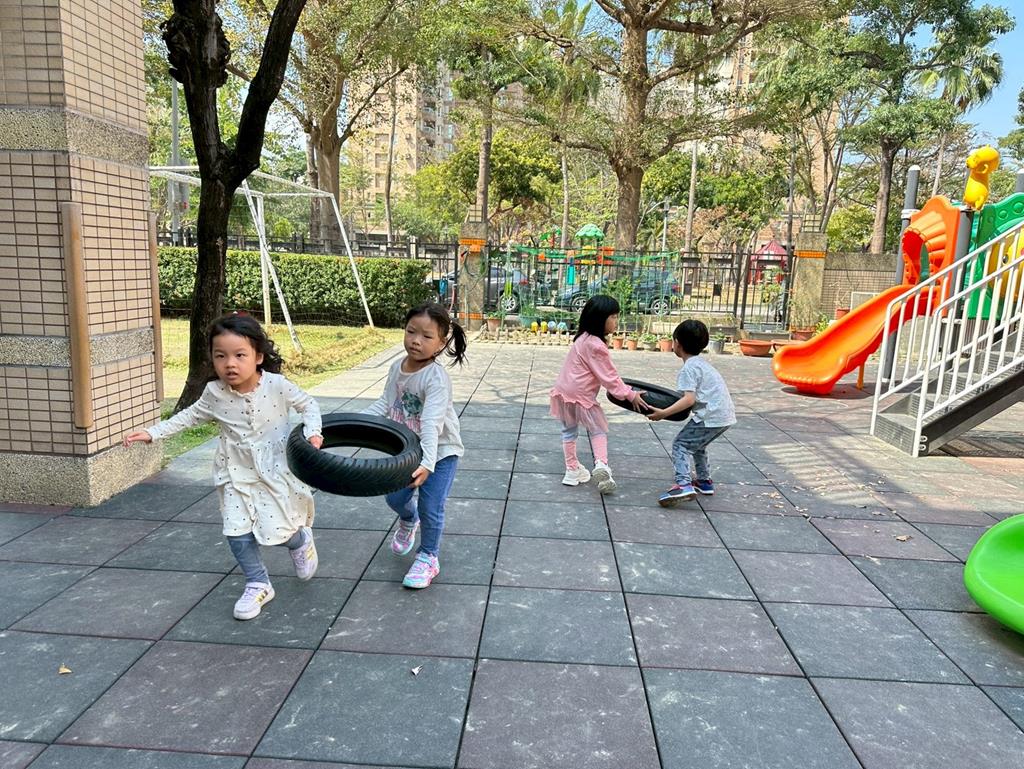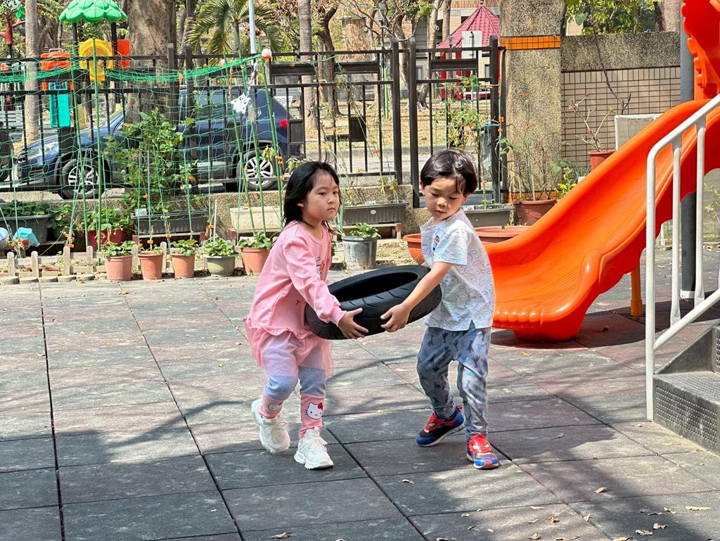 使用輪胎進行練習拉、搬的動作