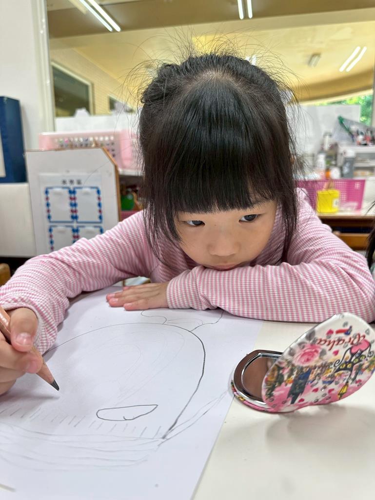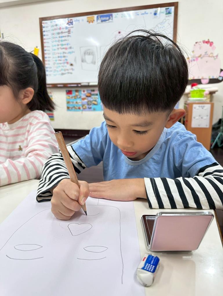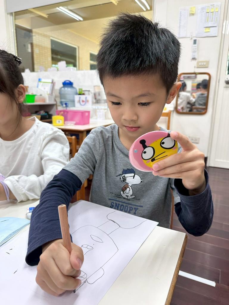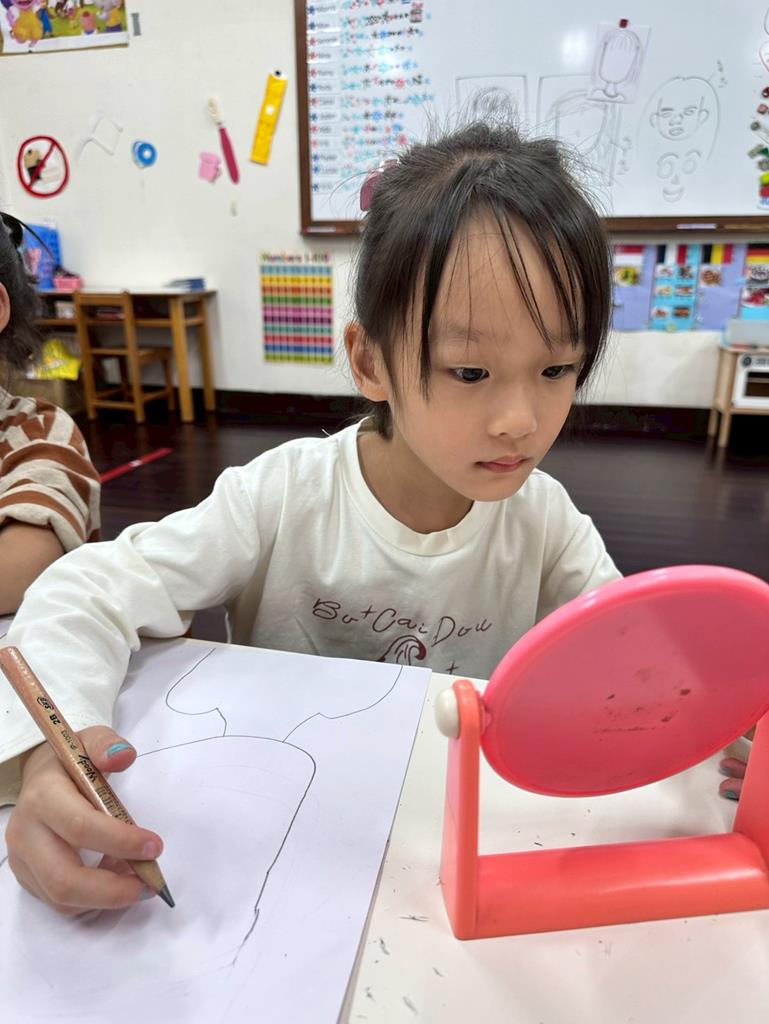 透過鏡子觀察自己的樣貌,畫出來的自己都是不一樣的,因為每個人都是獨一無二