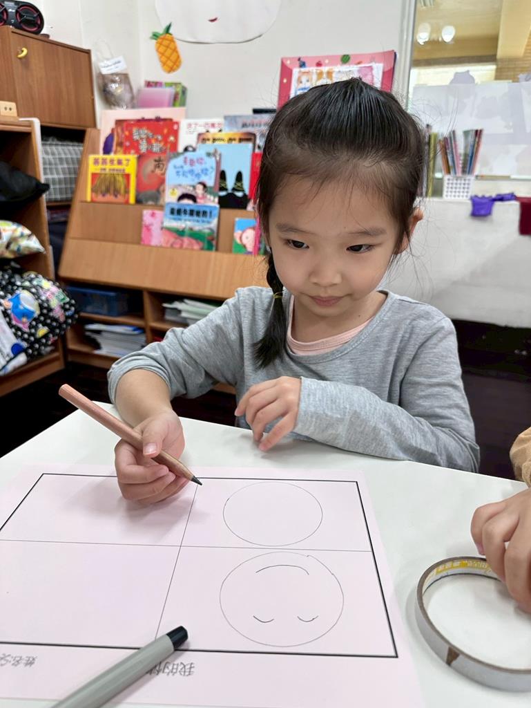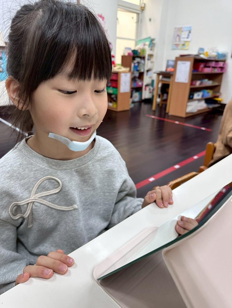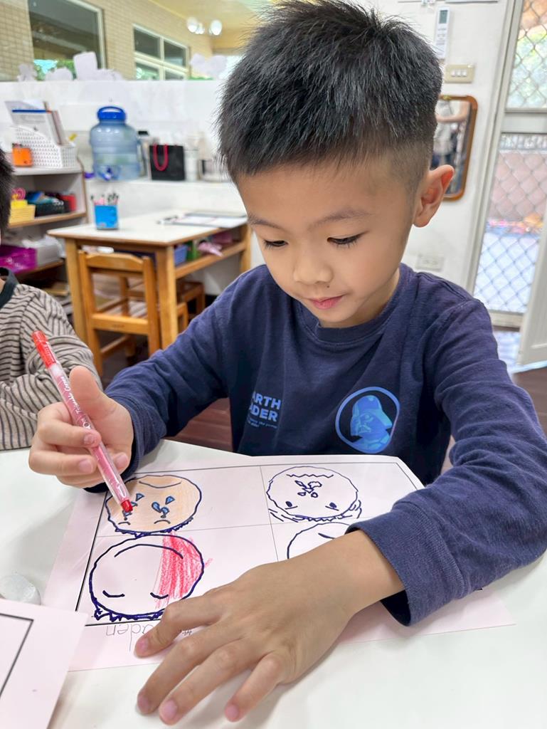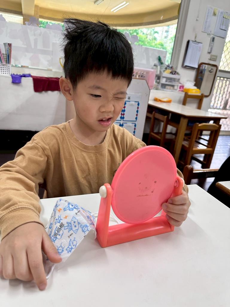 透過鏡子觀察各種情緒變化,並畫出表情、情緒,增進孩子的視覺觀察,學習分辨與表達情緒。