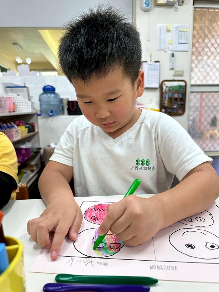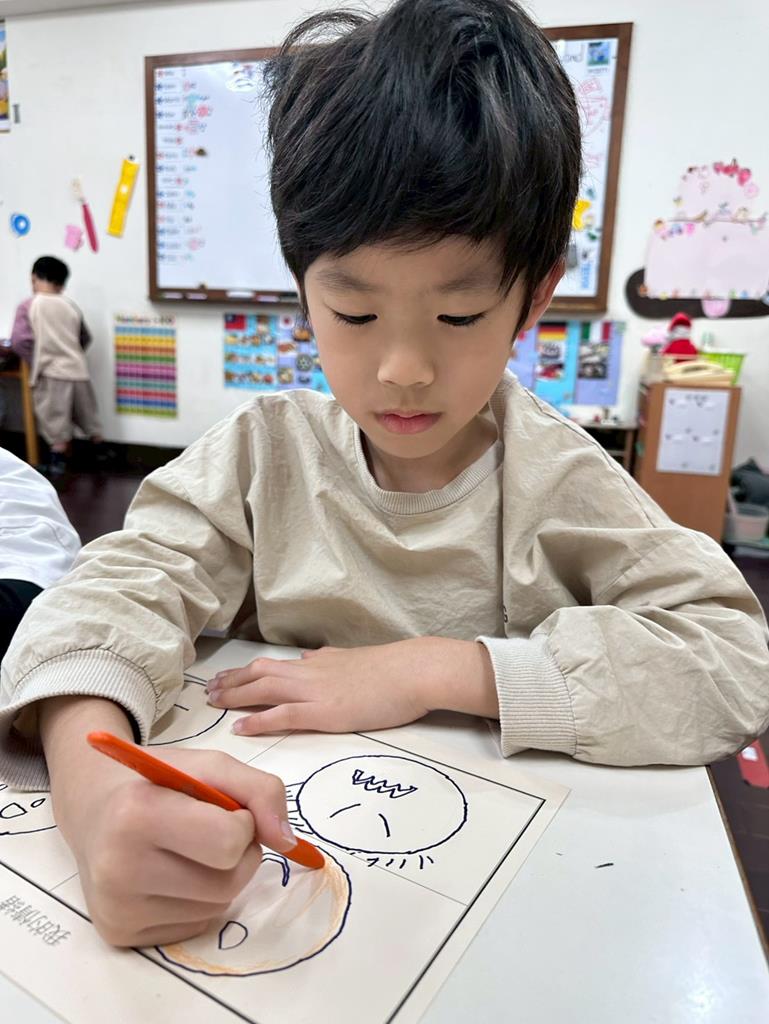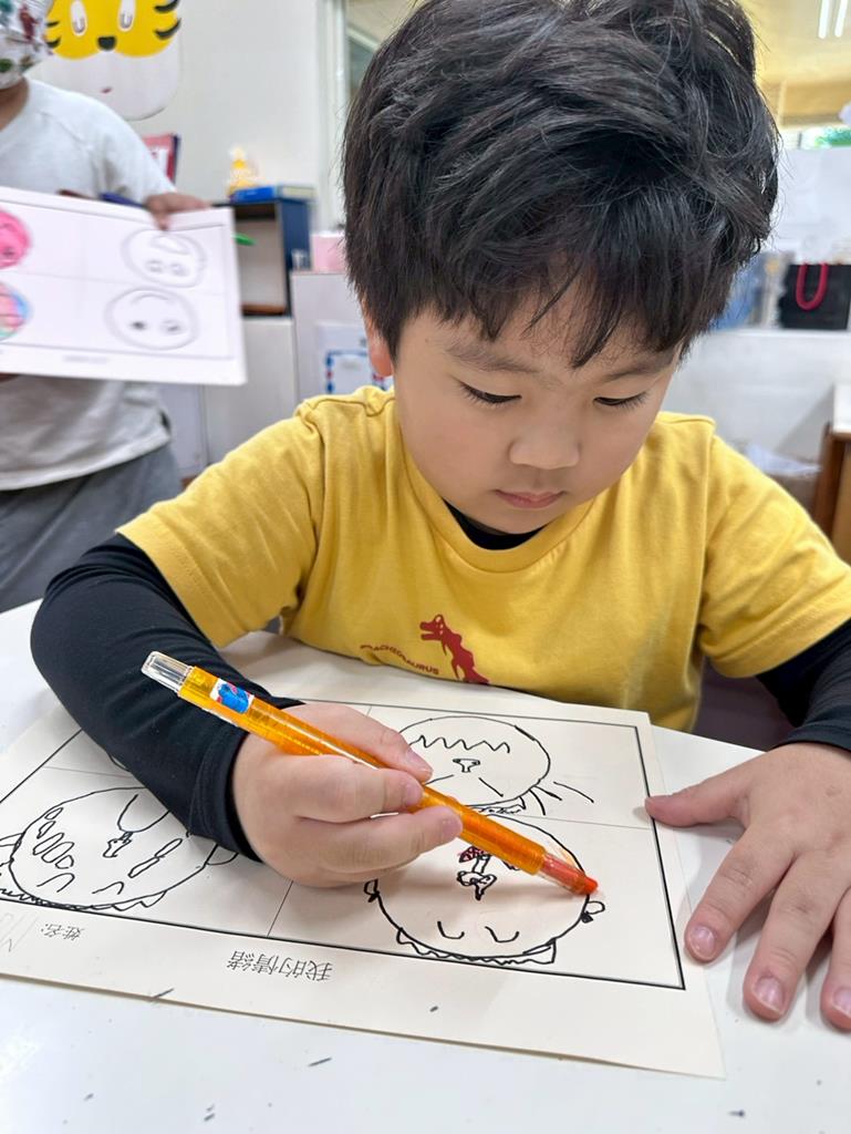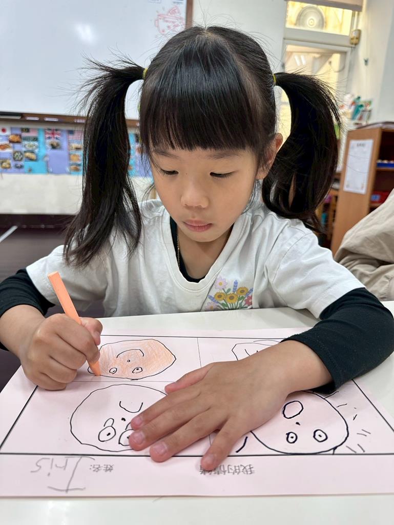 透過鏡子觀察各種情緒變化,並畫出表情、情緒,增進孩子的視覺觀察,學習分辨與表達情緒。