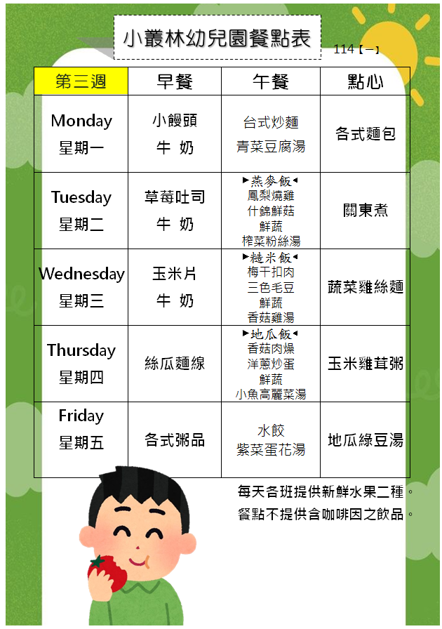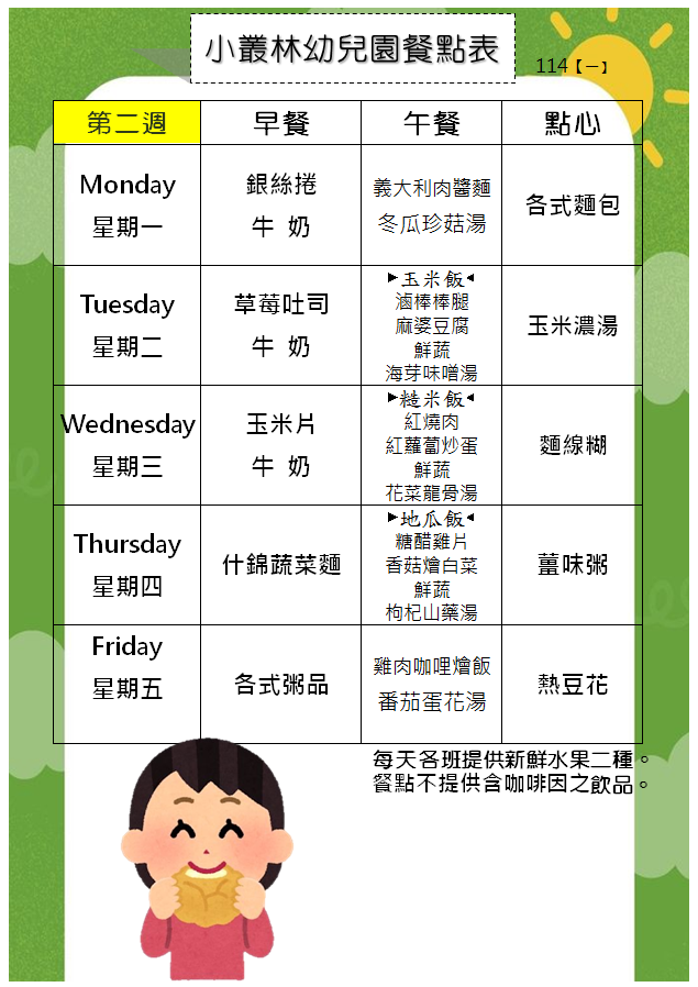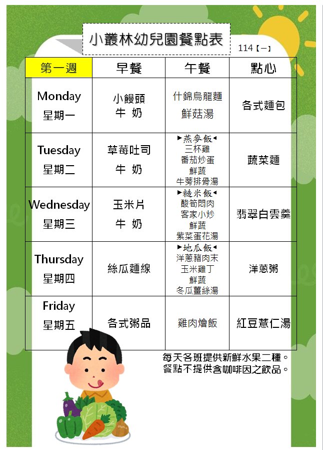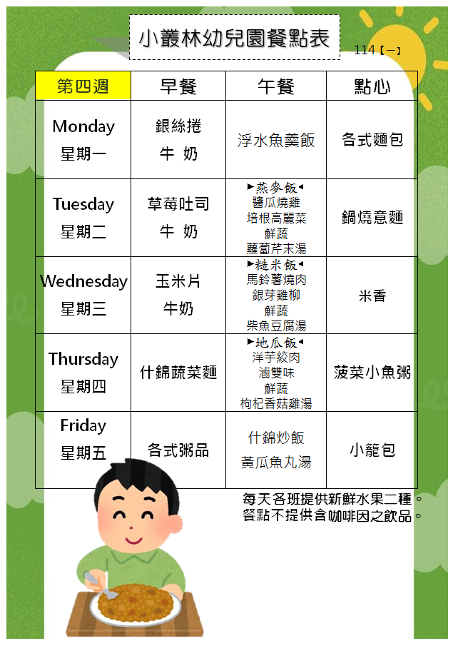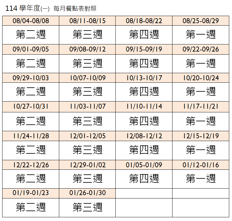 114(一)餐點表